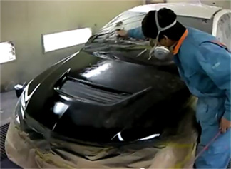 サフェーサーで下地処理をして、塗装ブースでのペイント作業を行います。